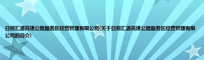 本文关于日照汇源高速公路服务区经营管理有限公司的简介就讲解完毕,希望对大家有所帮助。