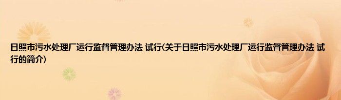 大家好,日照市污水处理厂运行监督管理办法 试行,关于日照市污水处理厂运行监督管理办法 试行的简介很多人还不知道,现在让我们一起来看看吧!