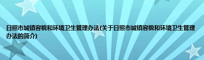 本文关于日照市城镇容貌和环境卫生管理办法的简介就讲解完毕,希望对大家有所帮助。
