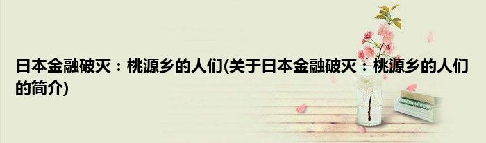 本文关于日本金融破灭:桃源乡的人们的简介就讲解完毕,希望对大家有所帮助。