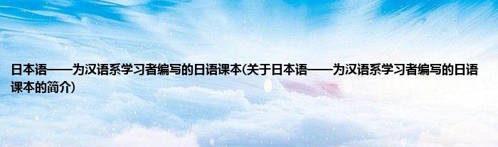 大家好,日本语——为汉语系学习者编写的日语课本,关于日本语——为汉语系学习者编写的日语课本的简介很多人还不知道,现在让我们一起来看看吧!