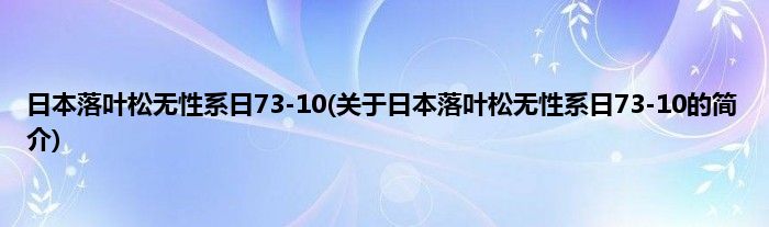 本文关于日本落叶松无性系日73-10的简介就讲解完毕,希望对大家有所帮助。