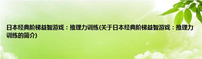 本文关于日本经典阶梯益智游戏:推理力训练的简介就讲解完毕,希望对大家有所帮助。