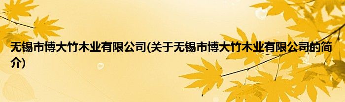 本文关于无锡市博大竹木业有限公司的简介就讲解完毕,希望对大家有所帮助。