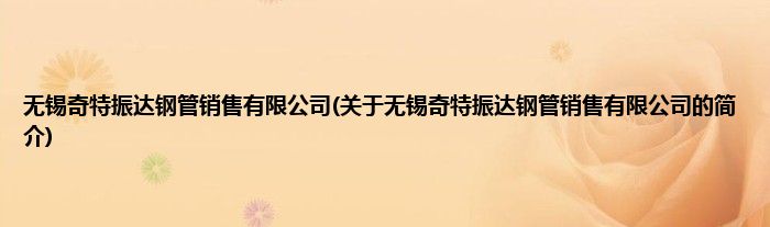 本文关于无锡奇特振达钢管销售有限公司的简介就讲解完毕,希望对大家有所帮助。