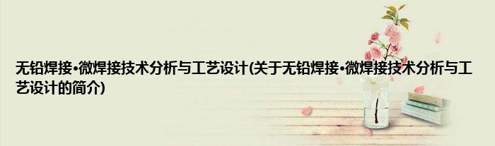 1、 《无铅焊接·微焊接技术分析与工艺设计》是电子工业出版社出版的图书,作者是宣大荣编著。