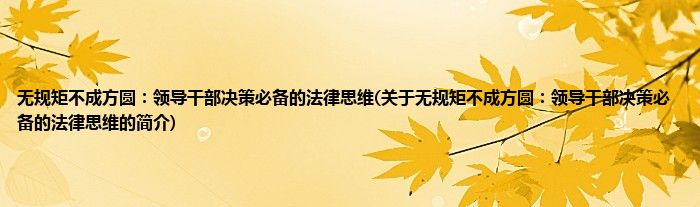 本文关于无规矩不成方圆:领导干部决策必备的法律思维的简介就讲解完毕,希望对大家有所帮助。