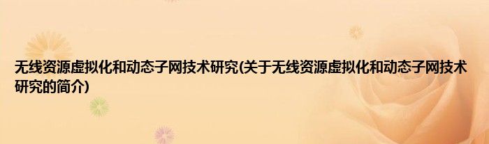 大家好,无线资源虚拟化和动态子网技术研究,关于无线资源虚拟化和动态子网技术研究的简介很多人还不知道,现在让我们一起来看看吧!
