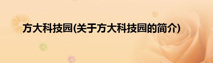 大家好,方大科技园,关于方大科技园的简介很多人还不知道,现在让我们一起来看看吧!