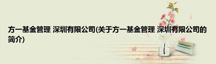 本文关于方一基金管理 深圳有限公司的简介就讲解完毕,希望对大家有所帮助。