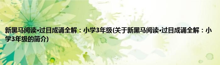 大家好,新黑马阅读·过目成诵全解:小学3年级,关于新黑马阅读·过目成诵全解:小学3年级的简介很多人还不知道,现在让我们一起来看看吧!
