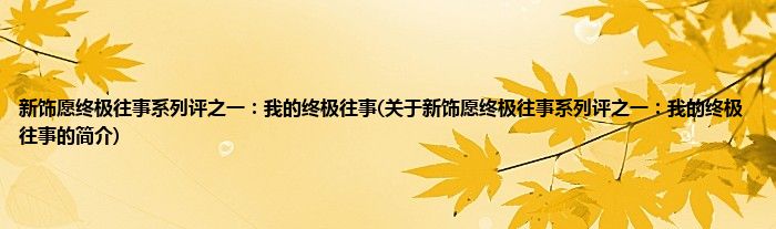 大家好,新饰愿终极往事系列评之一:我的终极往事,关于新饰愿终极往事系列评之一:我的终极往事的简介很多人还不知道,现在让我们一起来看看吧!