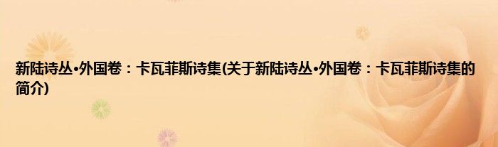 本文关于新陆诗丛·外国卷:卡瓦菲斯诗集的简介就讲解完毕,希望对大家有所帮助。