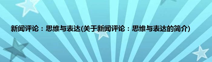 本文关于新闻评论:思维与表达的简介就讲解完毕,希望对大家有所帮助。