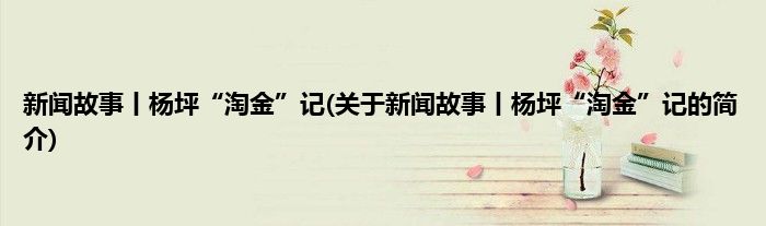 本文关于新闻故事丨杨坪“淘金”记的简介就讲解完毕,希望对大家有所帮助。