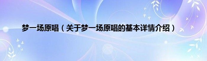 本文关于梦一场原唱的基本详情介绍就讲解完毕,希望对大家有所帮助。