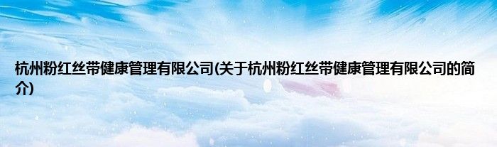 本文关于杭州粉红丝带健康管理有限公司的简介就讲解完毕,希望对大家有所帮助。