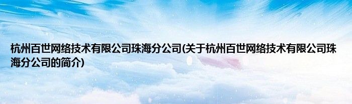 本文关于杭州百世网络技术有限公司珠海分公司的简介就讲解完毕,希望对大家有所帮助。