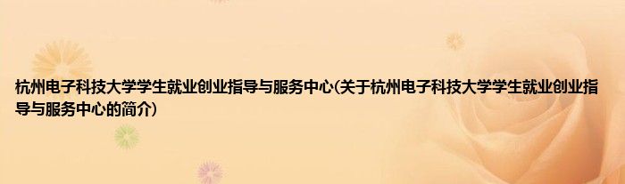 大家好,杭州电子科技大学学生就业创业指导与服务中心,关于杭州电子科技大学学生就业创业指导与服务中心的简介很多人还不知道,现在让我们一起来看看吧!