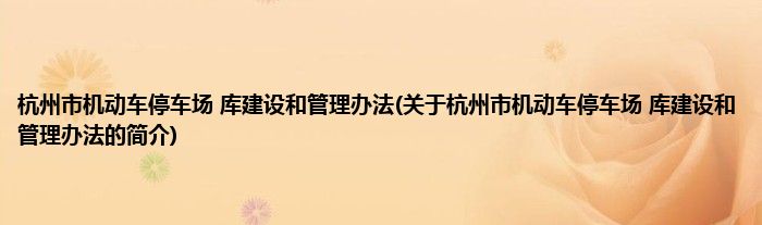 杭州市机动车停车场 库建设和管理办法(关于杭州市机动车停车场 库建设和管理办法的简介)