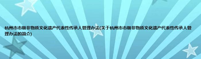 本文关于杭州市市级非物质文化遗产代表性传承人管理办法的简介就讲解完毕,希望对大家有所帮助。
