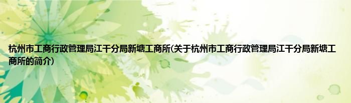 本文关于杭州市工商行政管理局江干分局新塘工商所的简介就讲解完毕,希望对大家有所帮助。