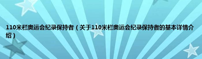 本文关于110米栏奥运会纪录保持者的基本详情介绍就讲解完毕,希望对大家有所帮助。