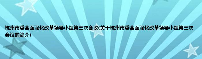 本文关于杭州市委全面深化改革领导小组第三次会议的简介就讲解完毕,希望对大家有所帮助。