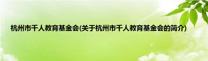 杭州市千人教育基金会(关于杭州市千人教育基金会的简介)