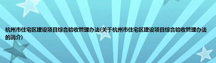 大家好,杭州市住宅区建设项目综合验收管理办法,关于杭州市住宅区建设项目综合验收管理办法的简介很多人还不知道,现在让我们一起来看看吧!