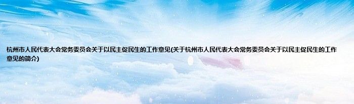 大家好,杭州市人民代表大会常务委员会关于以民主促民生的工作意见,关于杭州市人民代表大会常务委员会关于以民主促民生的工作意见的简介很多人还不知道,现在让我们一起来看看吧!