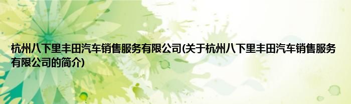 本文关于杭州八下里丰田汽车销售服务有限公司的简介就讲解完毕,希望对大家有所帮助。