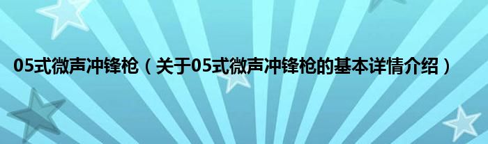 本文关于05式微声冲锋枪的基本详情介绍就讲解完毕,希望对大家有所帮助。