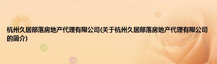 本文关于杭州久居部落房地产代理有限公司的简介就讲解完毕,希望对大家有所帮助。