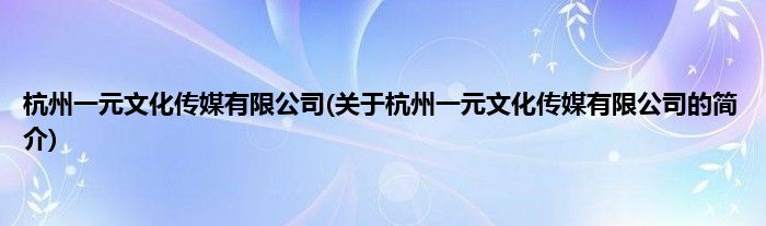 本文关于杭州一元文化传媒有限公司的简介就讲解完毕,希望对大家有所帮助。