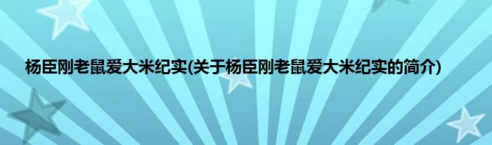 大家好,杨臣刚老鼠爱大米纪实,关于杨臣刚老鼠爱大米纪实的简介很多人还不知道,现在让我们一起来看看吧!