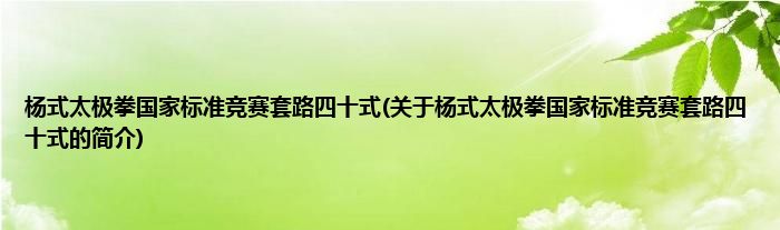 本文关于杨式太极拳国家标准竞赛套路四十式的简介就讲解完毕,希望对大家有所帮助。