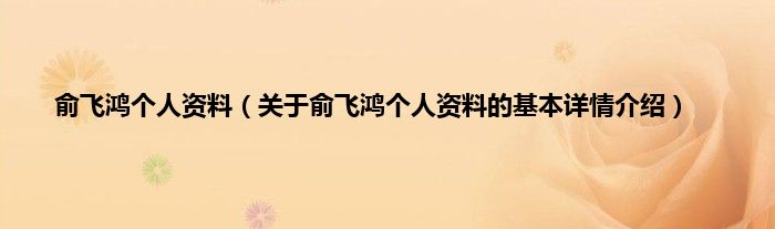 本文关于俞飞鸿个人资料的基本详情介绍就讲解完毕,希望对大家有所帮助。