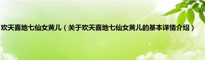 本文关于欢天喜地七仙女黄儿的基本详情介绍就讲解完毕,希望对大家有所帮助。