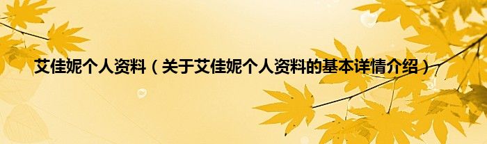 本文关于艾佳妮个人资料的基本详情介绍就讲解完毕,希望对大家有所帮助。