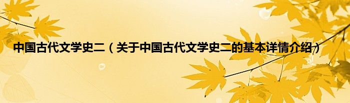 本文关于中国古代文学史二的基本详情介绍就讲解完毕,希望对大家有所帮助。