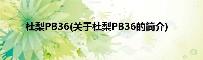 本文关于杜梨PB36的简介就讲解完毕,希望对大家有所帮助。