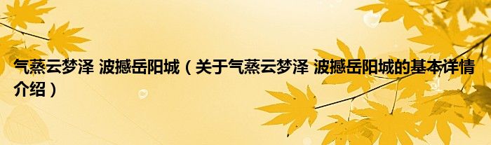 本文关于气蒸云梦泽 波撼岳阳城的基本详情介绍就讲解完毕,希望对大家有所帮助。