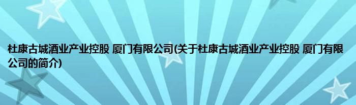 本文关于杜康古城酒业产业控股 厦门有限公司的简介就讲解完毕,希望对大家有所帮助。