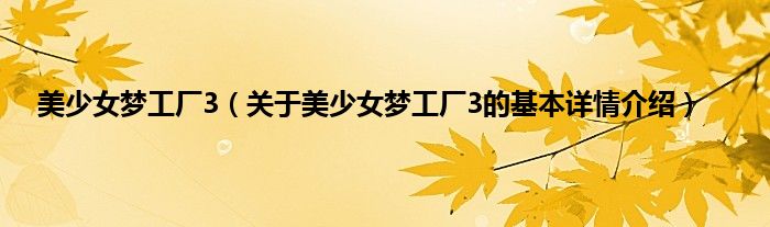 本文关于美少女梦工厂3的基本详情介绍就讲解完毕,希望对大家有所帮助。