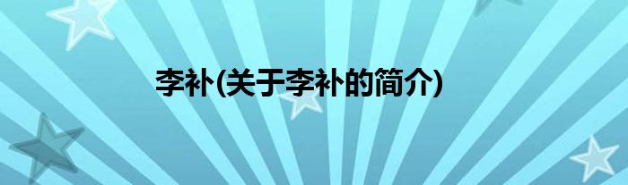 本文关于李补的简介就讲解完毕,希望对大家有所帮助。