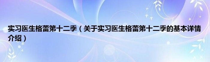 本文关于实习医生格蕾第十二季的基本详情介绍就讲解完毕,希望对大家有所帮助。