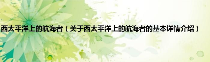 本文关于西太平洋上的航海者的基本详情介绍就讲解完毕,希望对大家有所帮助。