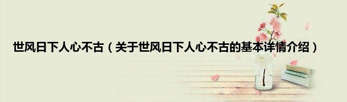 本文关于世风日下人心不古的基本详情介绍就讲解完毕,希望对大家有所帮助。