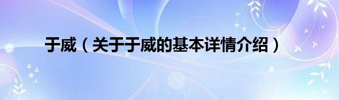 本文关于于威的基本详情介绍就讲解完毕,希望对大家有所帮助。